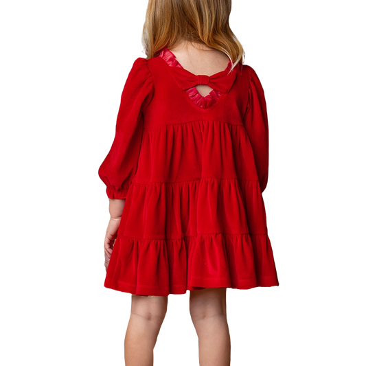 Velvet Shoulder Tie Mini Dress with Rhinestones - Red