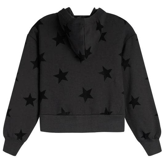 Girls Black Flocked Allover Star Cropped Zip Hoodie