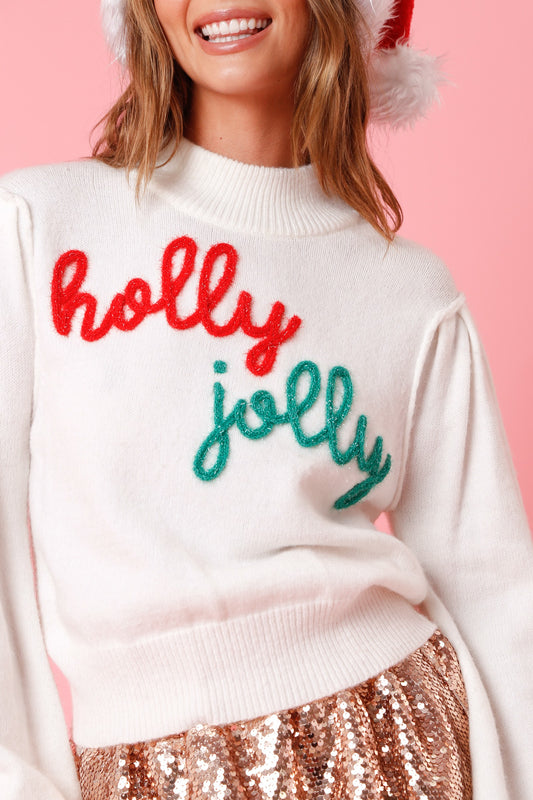 'Holly Jolly' Lurex Embroidery Sweater