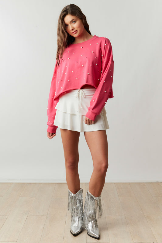 Mardi Gras Sequin Jester Puffer Sleeve Crop Top
