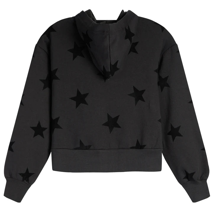 Girls Black Flocked Allover Star Cropped Zip Hoodie