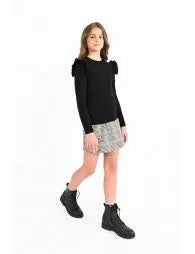 Brighten up your wardrobe with this adorable black knitted sweater! Perfect for chilly days, the ruffle on the sleeve gives it a sweet touch. Whether for school or play, you'll love this cozy sweater to keep you warm.