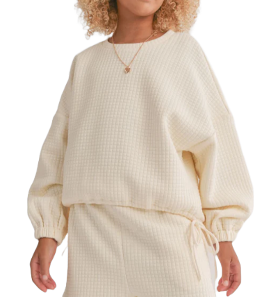 Pairs great with our Girls Pastime Textured Terry Sidetie Pullover
