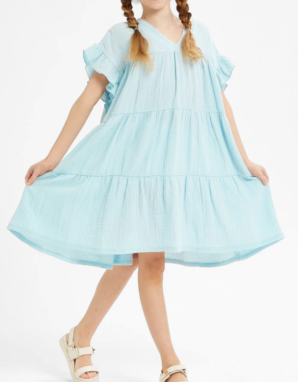 Girls Ruffle Sleeves Tiered Gauze Dress