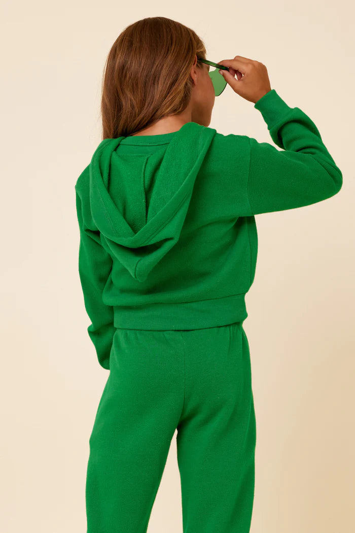 Girls Kelley Green Slit Pocket Cropped Zip Hoodie