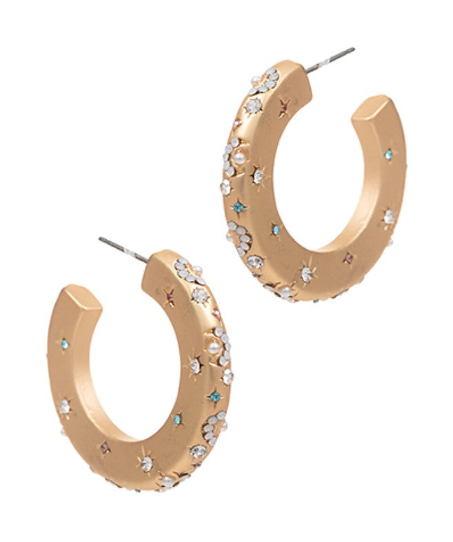 Your style never loved something so much--these Matte Gold Pave Crystal Metal Hoops Earrings sparkle and shine with every head-turning look. Add some glitz and glam to your outfit with these amazing hoops, perfect for any and every occasion!