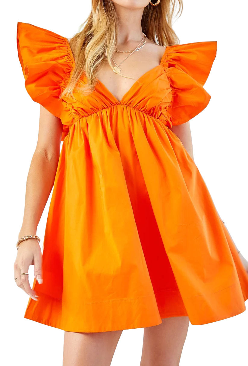 This Ruffle Tie Back Poplin Dress will turn heads! With its orange hue and tie back detail, you'll be ready to rock your next big event. Whether you're off to a party, or just a night out on the town.