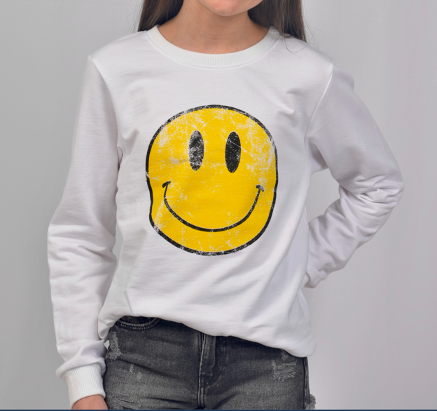 Girls Vintage Happy Face Distressed Sweatshirt