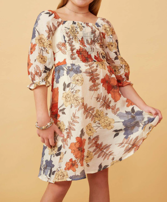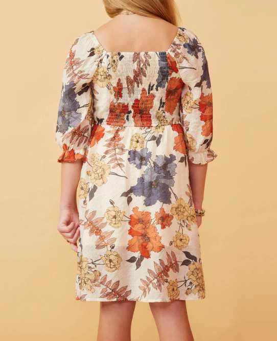 Girls Textured Floral Smocked Dress
