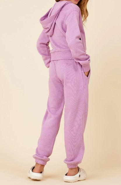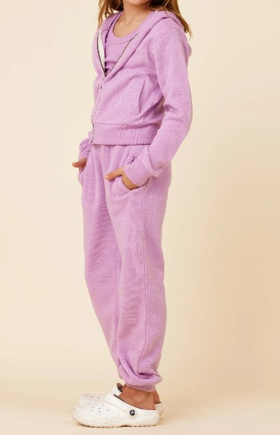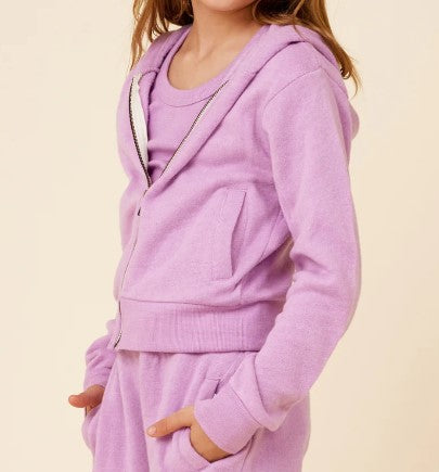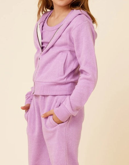Girls Violet Slit Pocket Cropped Zip Hoodie